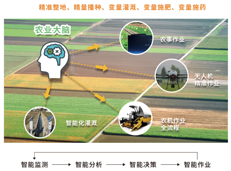 以北斗衛(wèi)星導航技術(shù)為基礎,結(jié)合智能農(nóng)事建議,聯(lián)動智能裝備,實現(xiàn)大田生產(chǎn)全程作業(yè)機械化、管理可視化,農(nóng)場無人化。