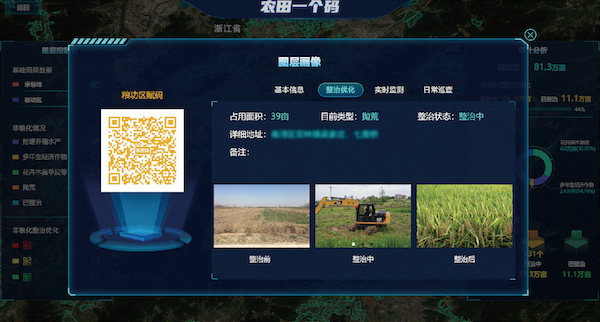 構(gòu)建“一田一碼”,對農(nóng)田地塊進行賦碼,以“農(nóng)田碼”貫穿規(guī)劃選址、竣工驗收、項目管護、農(nóng)田種植等全過程數(shù)據(jù),構(gòu)建“碼上監(jiān)管””碼上服務(wù)”等業(yè)務(wù)場景,實現(xiàn)全周期串聯(lián),清晰掌提高標準農(nóng)田建設(shè)全空間、全要素、全過程信息,做到“事前事中可預(yù)警”“全程信息可追溯”。