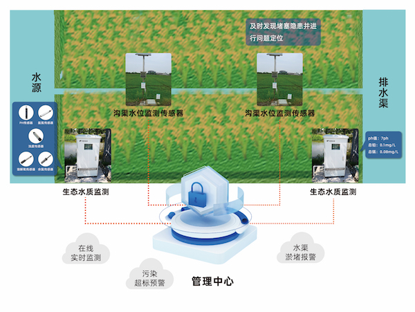 水是農(nóng)業(yè)生產(chǎn)的生命線,通過應(yīng)用物聯(lián)網(wǎng)水質(zhì)監(jiān)測系統(tǒng)、配備溝渠水位監(jiān)測系統(tǒng),實時監(jiān)測水質(zhì)PH值、溶解氧、氨氮等關(guān)鍵指標,監(jiān)測水渠水位變化,聯(lián)動物聯(lián)網(wǎng)平臺及時發(fā)布水質(zhì)污染超標、水渠淤堵等預(yù)警信息,減少因水資源污染和洪澇災(zāi)害對高標準農(nóng)田造成的經(jīng)濟損失。