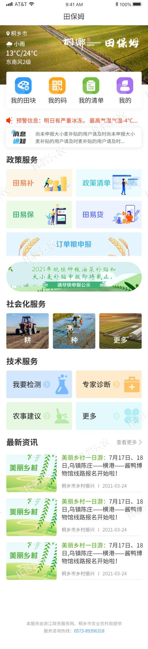 桐鄉(xiāng)是浙北重要糧食生產(chǎn)基地,糧食總產(chǎn)穩(wěn)定在13萬(wàn)噸以上,種植面積穩(wěn)定在30萬(wàn)畝以上,種糧農(nóng)戶1.6萬(wàn)多戶。生產(chǎn)過(guò)程中發(fā)現(xiàn)缺少快速服務(wù)入口、惠農(nóng)政策申辦繁瑣、流程審批復(fù)雜以及找技術(shù)困難等問(wèn)題。“田保姆”定位在農(nóng)民最關(guān)心的“一件事”上,包含土地、氣象、農(nóng)技、農(nóng)資、農(nóng)機(jī)、金融、保險(xiǎn)、補(bǔ)貼等都是解決農(nóng)民最著急的問(wèn)題。